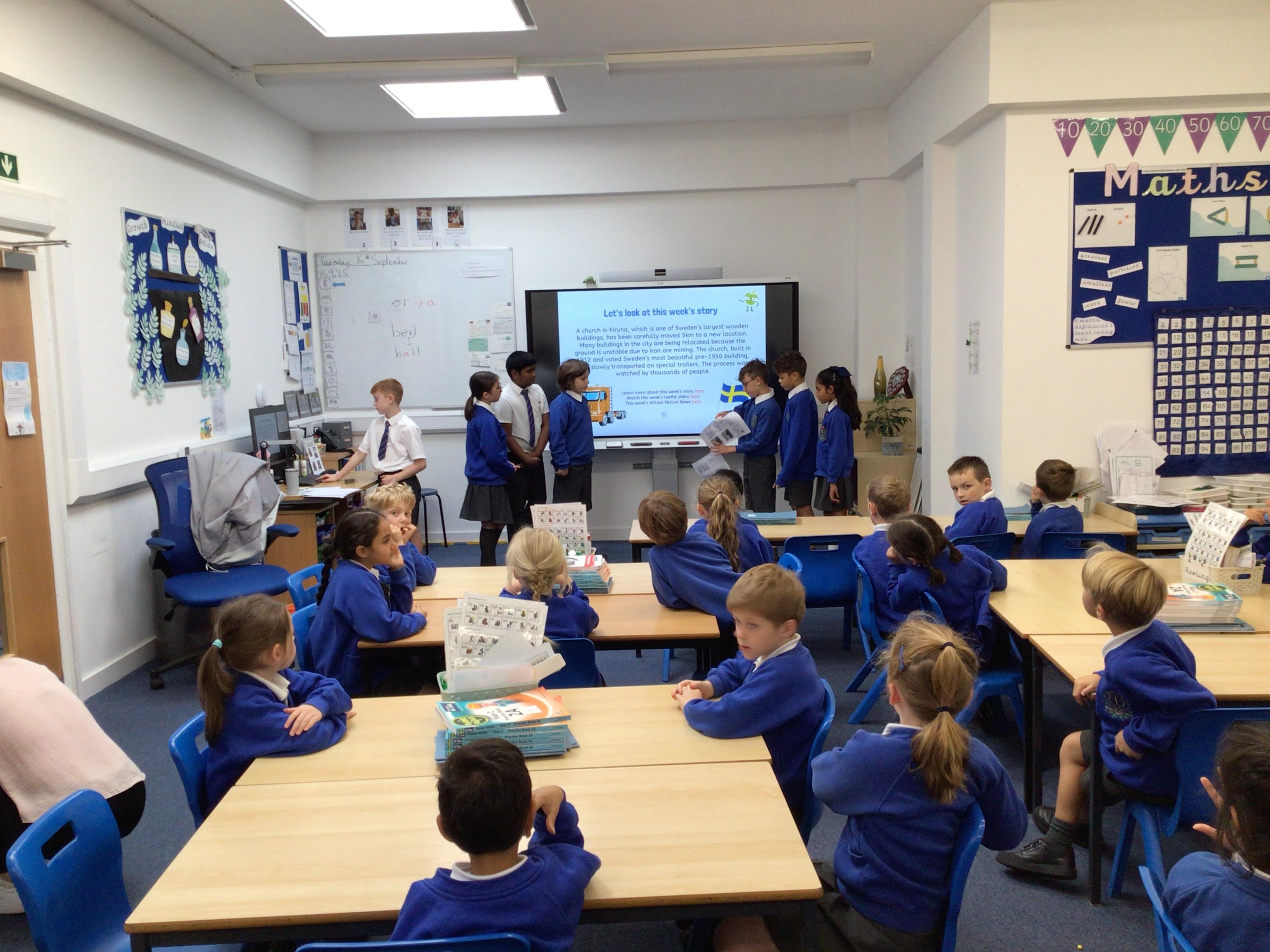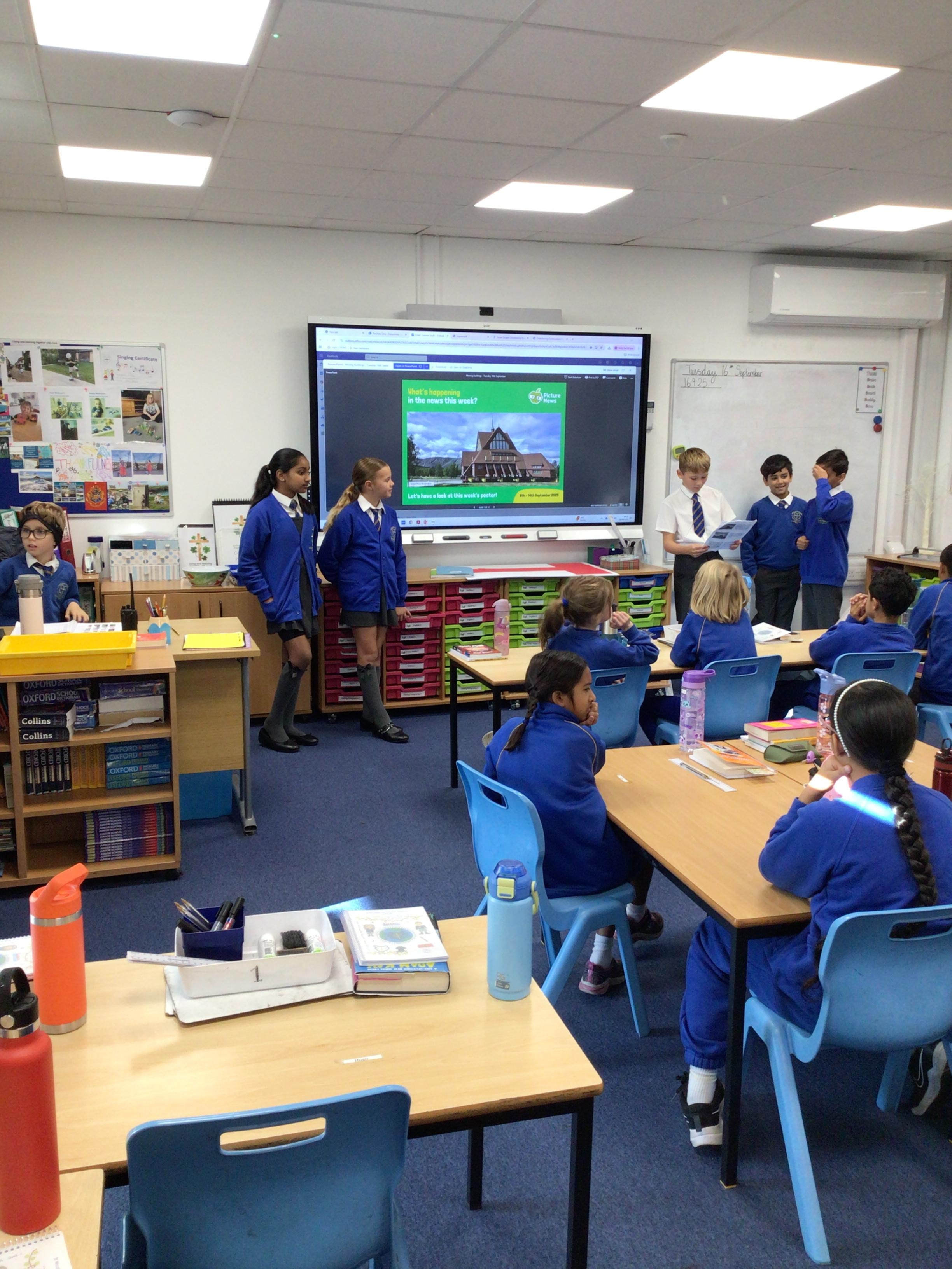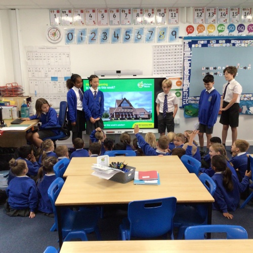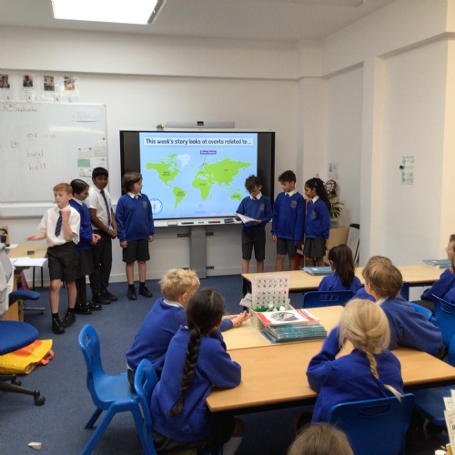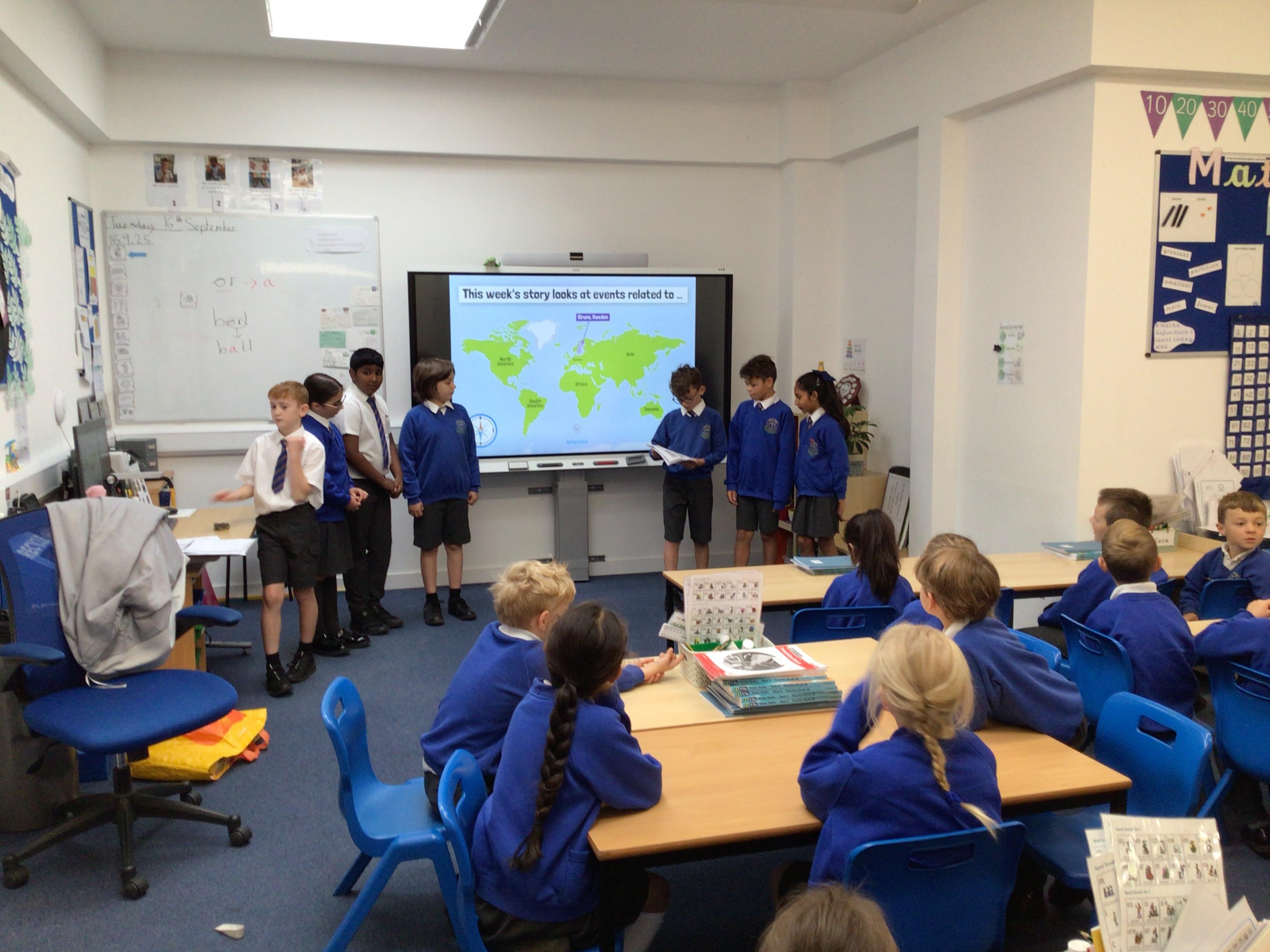In Willow class, we present a collective worship assembly to each of the other classes in the school, most weeks. These are called Picture News assemblies and we discuss the latest events around the world and important news.