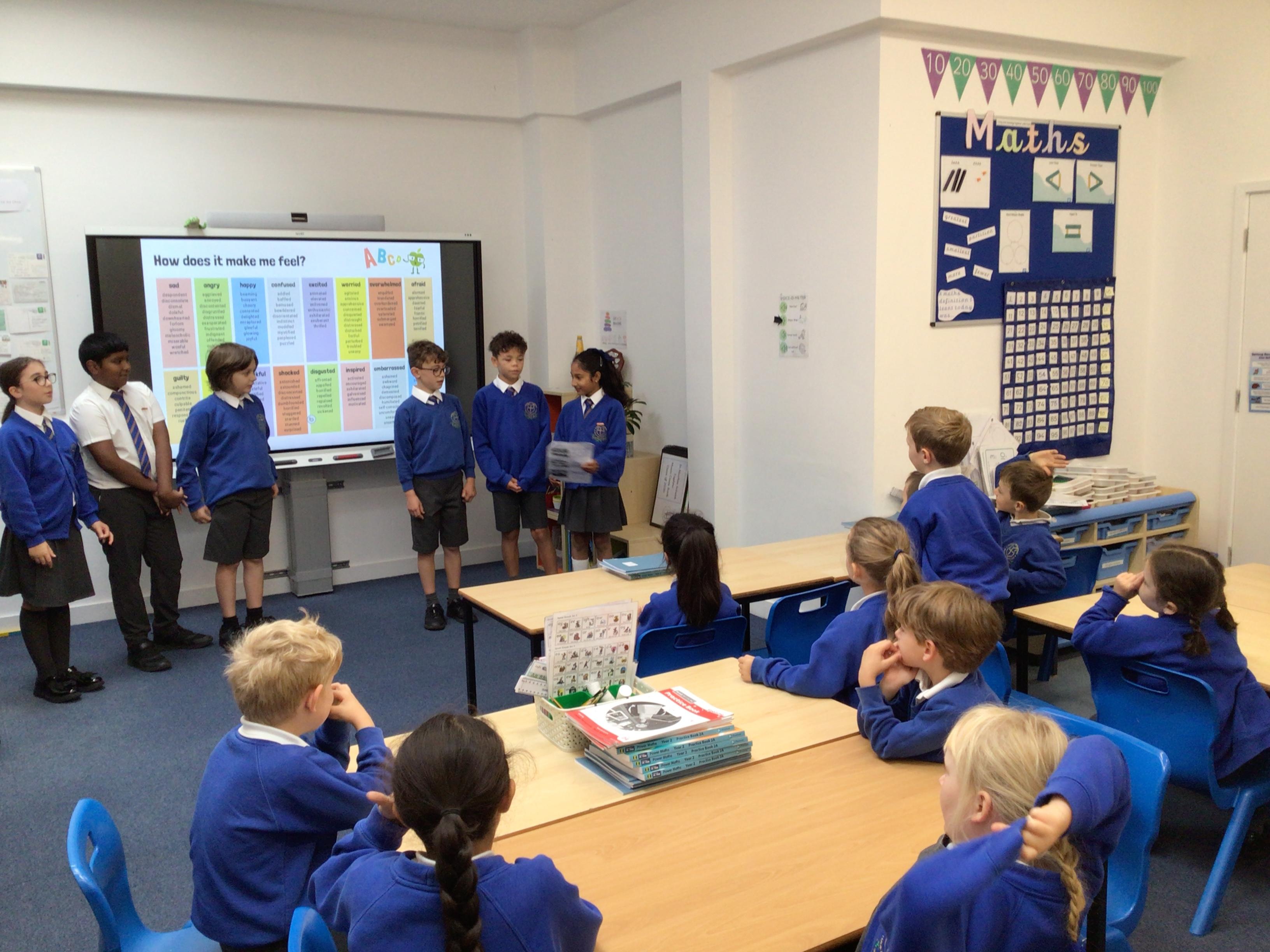 Our audience discusses what we have presented to them and we relate each story to our own experiences. Children have the opportunity to work together when planning their assemblies, taking on a responsibility.
