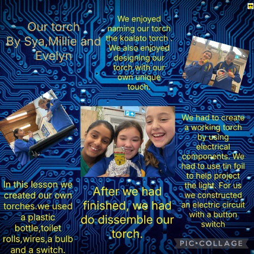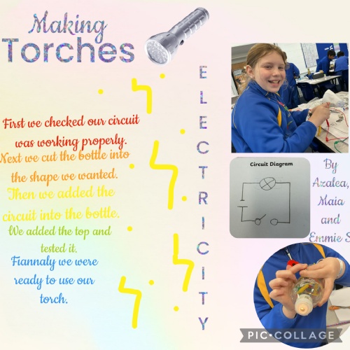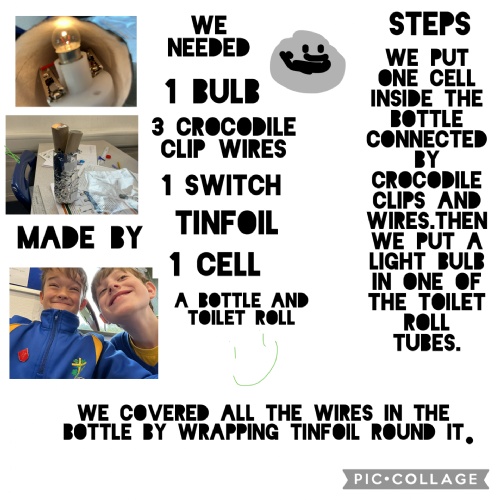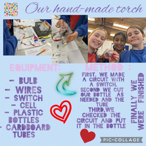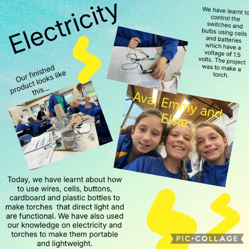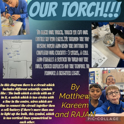 This week, the children made electrical circuits to create torches. They used a switch within the circuit to turn the torches on and off. You can see their process on their Pic Collage posters.